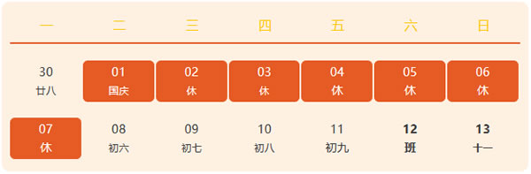 根据《国务院办公厅关于2024年部分节假日安排的通知》,结合公司实际情况,现将南京科力悦国庆节放假安排通知如下: