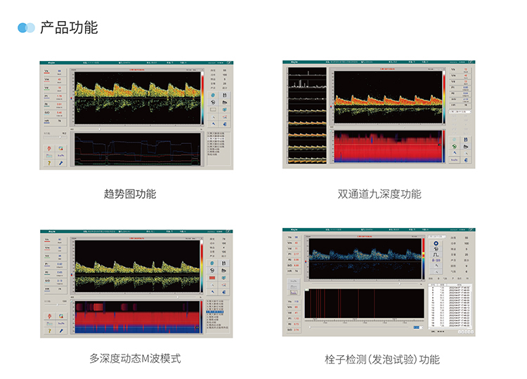 支持单通栓子与双通栓子检测模式,在血管选择区还可选择进行屏气试验与脑死亡试验